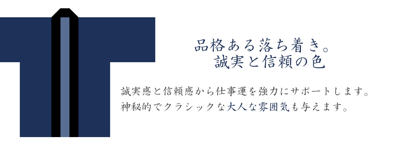 落ち着き・重厚感・信頼感・誠実・安心・真面目・品格がある・理知的・クラシックで大人な雰囲気・夜空・神秘的なイメージ・洞察力を高める・静寂