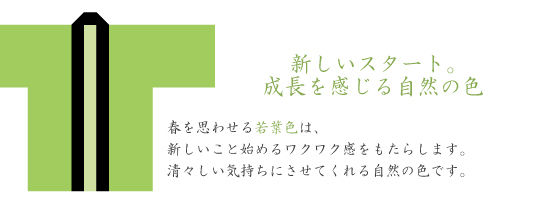 若葉は、萌え出る若葉の色であり、植物の生命力や再生力を象徴する色です。