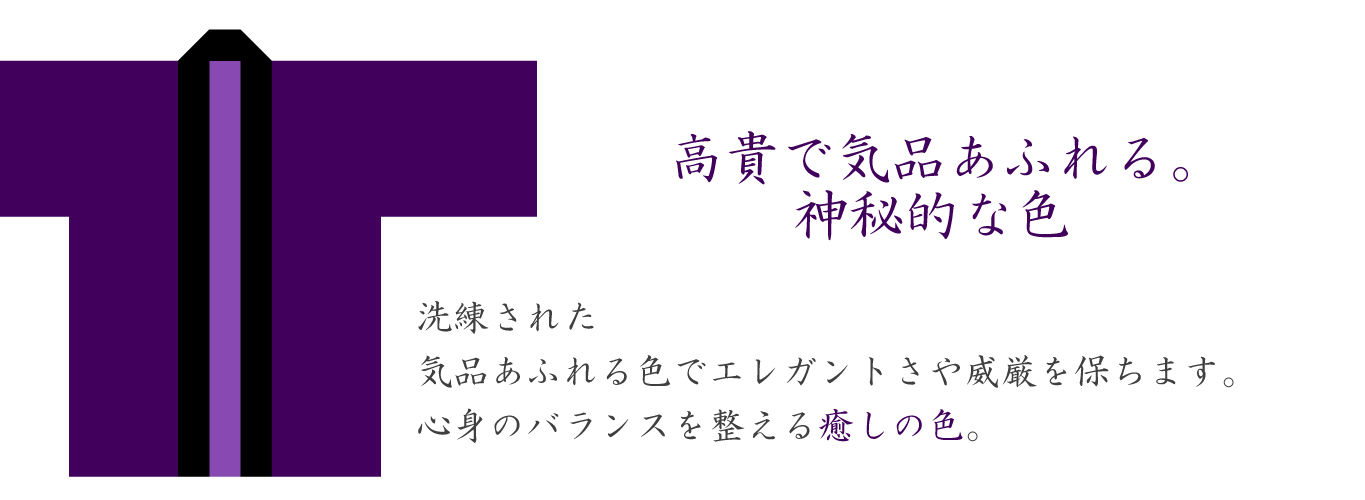 洗練された気品あふれる色でエレガントさや威厳を保つ色。