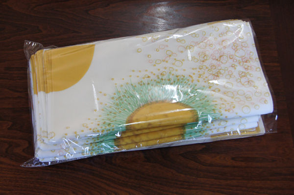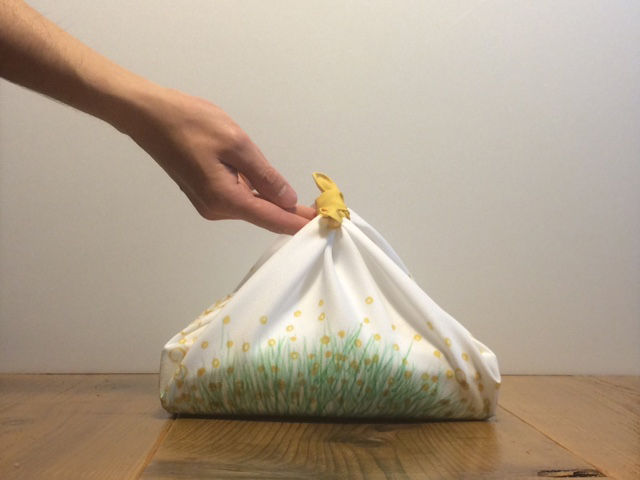 包むと花畑が立ち上がり、結び目が黄色い蝶々になるようなイメージでデザインしました。