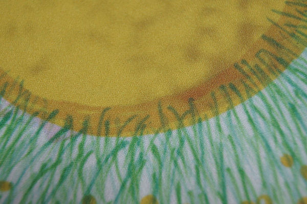 描かれたデザインは綺麗にプリントされています。生地特有のシボにアート作品が相まって、独特の風合いが感じられます。