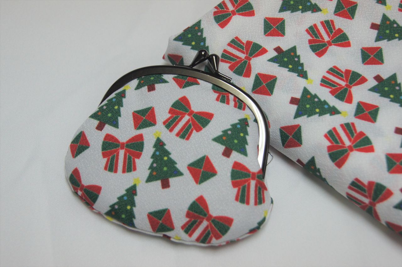 2種類のがま口のコスメポーチ製作のお手伝いをさせていただきました。