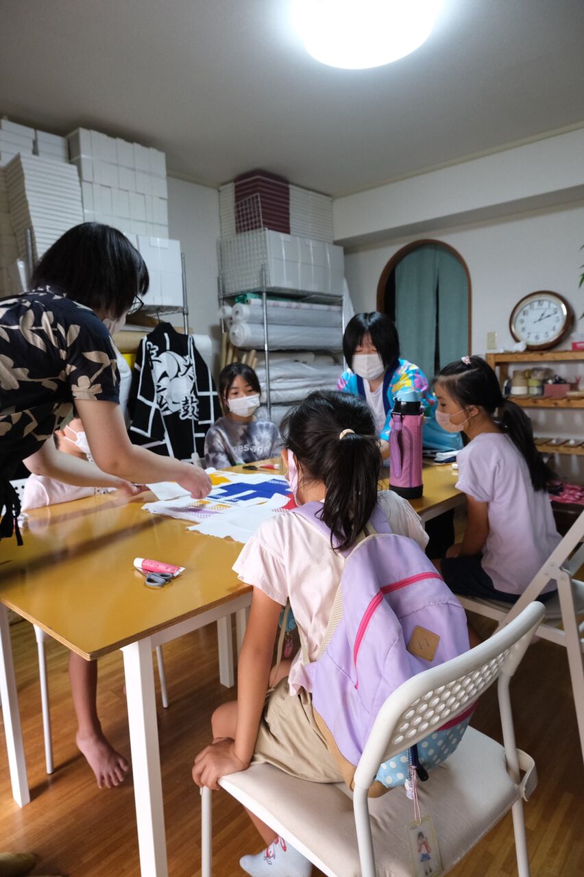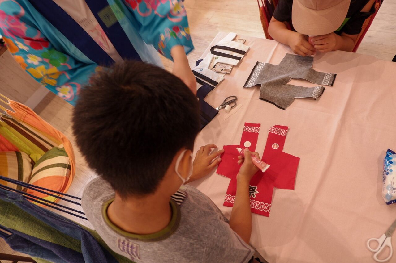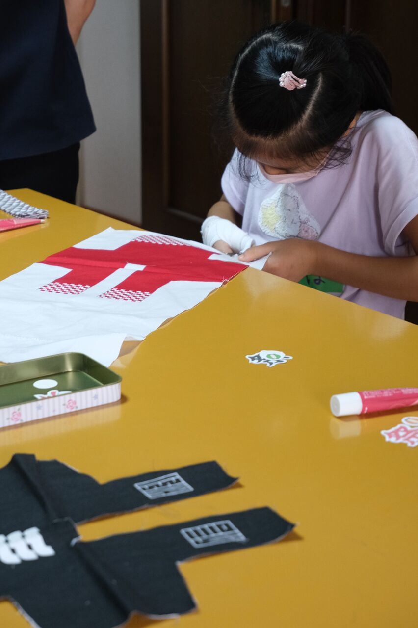 いつも製作している法被はかなり大きく、子供たちでは難しすぎるので