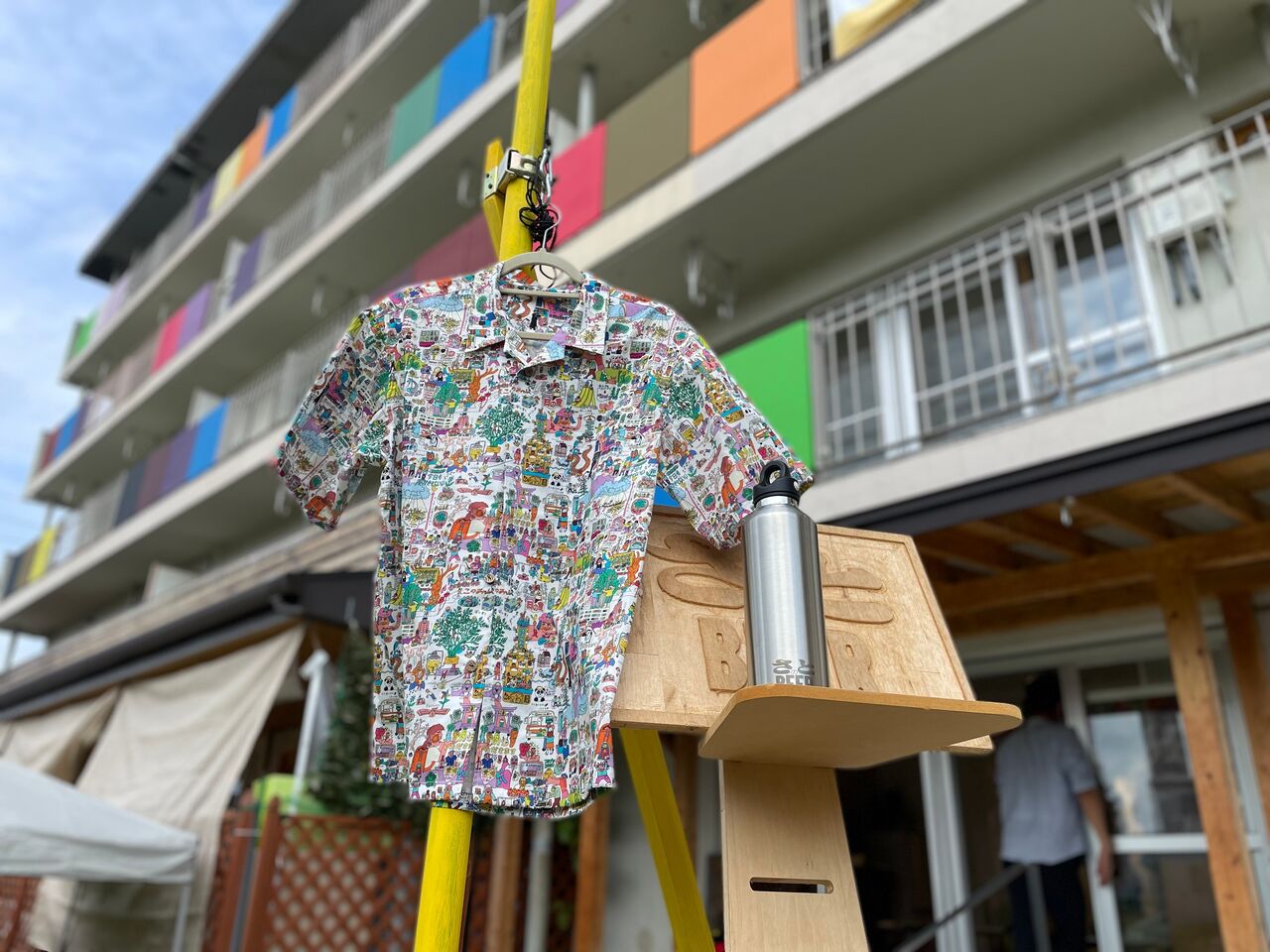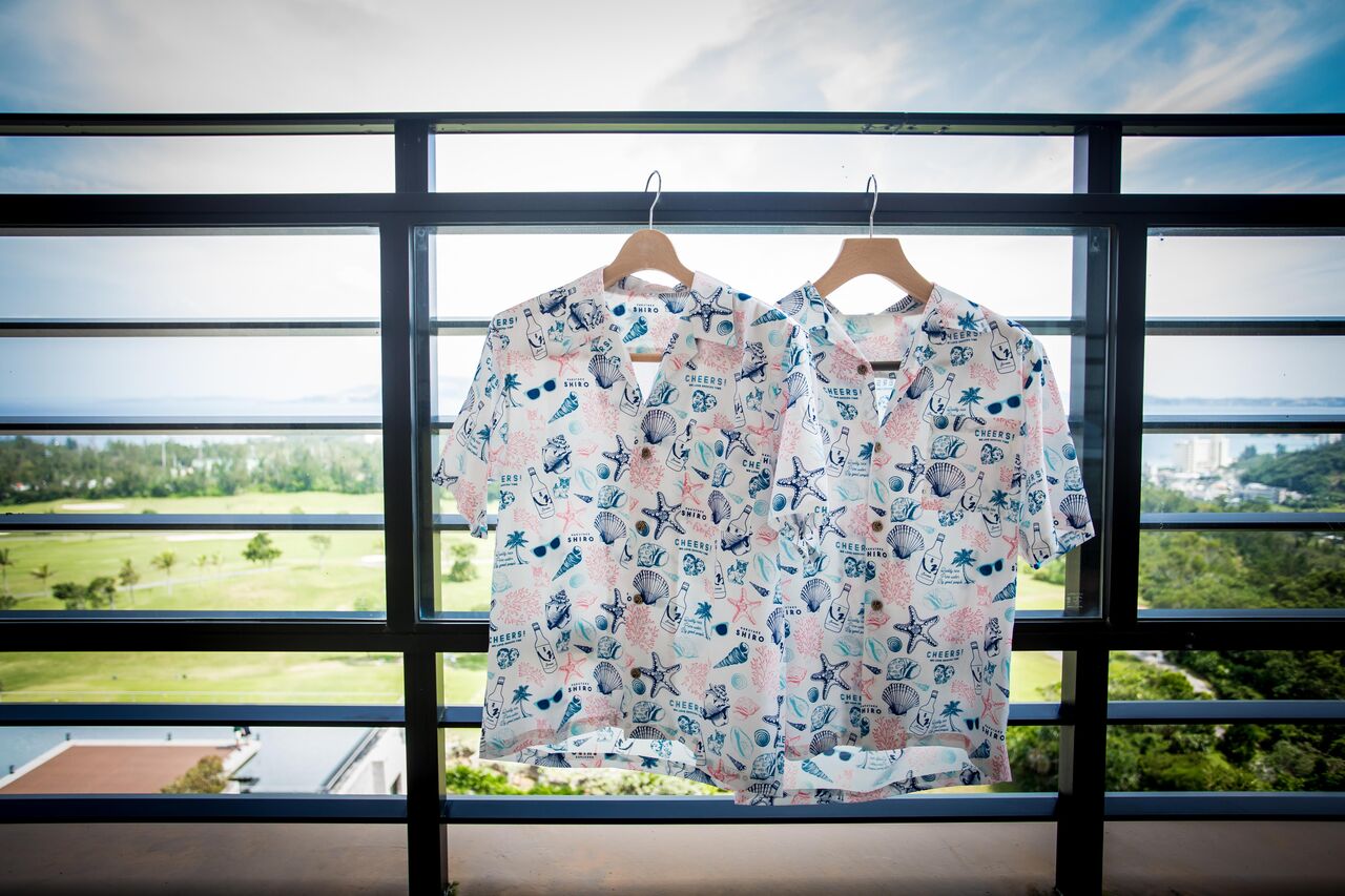 宗像を題材に描かれた、ひのさとブリュワリーの壁画をアロハシャツのデザインに。