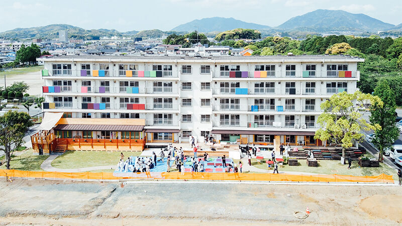 福岡県宗像市にある日の里団地は、今から約50年前に完成し、最盛期には約20,000人が暮らしを共にした九州最大級の集合住宅です。2020年、老朽化が進み人が住めなくなった一部閉鎖棟を解体し、次の50年を暮らす場をつくる団地再生プロジェクト「さとづくり48」が始動しました。言葉としては月並みかもしれませんが、古くなったものをただ壊して、新しくつくり変えるのではなく、日の里団地や宗像という地域で大切にされてきた「気持ちのバトン」を次の世代へと受け渡すことをテーマにさまざまな活動をおこなっています。本来は解体予定だった「48号棟」は、プロジェクトのメンバーで修繕しながら、「地域の会話を生む」場所として生まれ変わってきています。「地産地消を目指すブリュワリー」や「コミュニティ拠点となるカフェ」、「子供たちが活き活き成長する保育園」など、地域の中での話のタネになっていく「地域の文脈」を後押しする機能がどんどん生まれていく予定です。誰かにつくってもらう「まちづくり」ではなく、地域の人たちが主人公になってよく変化させていく「さとづくり」を目指していければと思います。